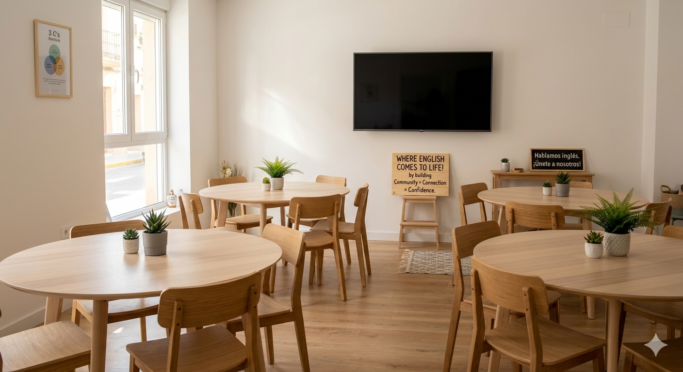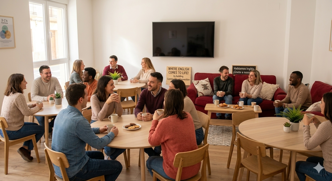 En nuestro English Conversation Club, creamos un espacio de práctica intermedio diseñado específicamente para cerrar la brecha entre el conocimiento teórico y el uso del inglés en la vida real. Entendemos que muchas personas se sienten nerviosas al hablar por falta de oportunidades, por lo que nuestro método se enfoca en construir las 3 C’s: